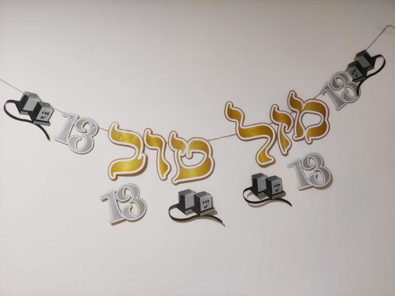 שרשרת בר מצווה מזל טוב ותפילין שחור וזהב