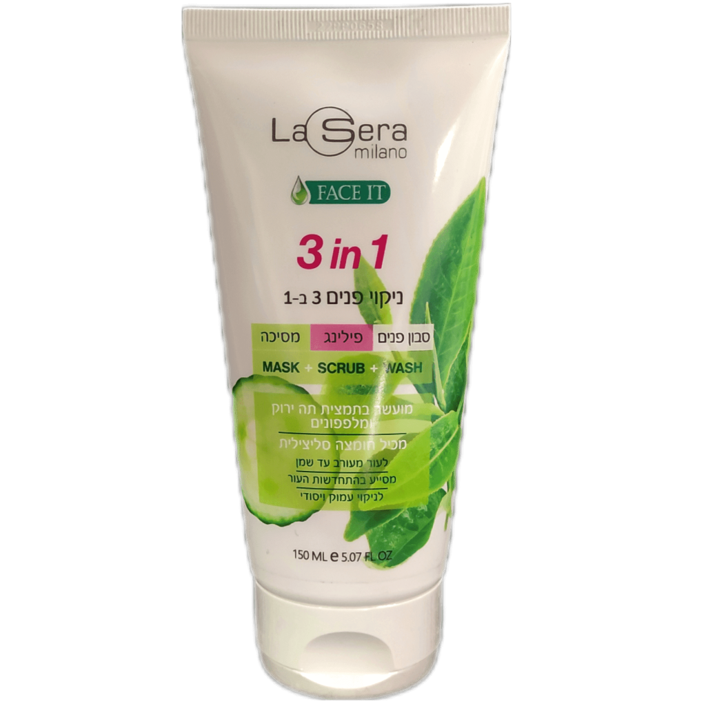 סבון-פילינג-מסיכה לעור מעורב עד שמן. מועשר בתמציות תה ירוק ומלפפונים. מכיל חומצה סליצלית, תמצית אלוורה ומגנזיום. שלוש פעולות במוצר אחד לניקוי יעיל ויסודי. 1.מטהר ומסיר שאריות שומן ולכלוך. 2. מעניק מראה גוון עור אחיד ללא ברק. 3. מסייע בהתחדשות העור.